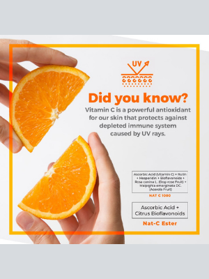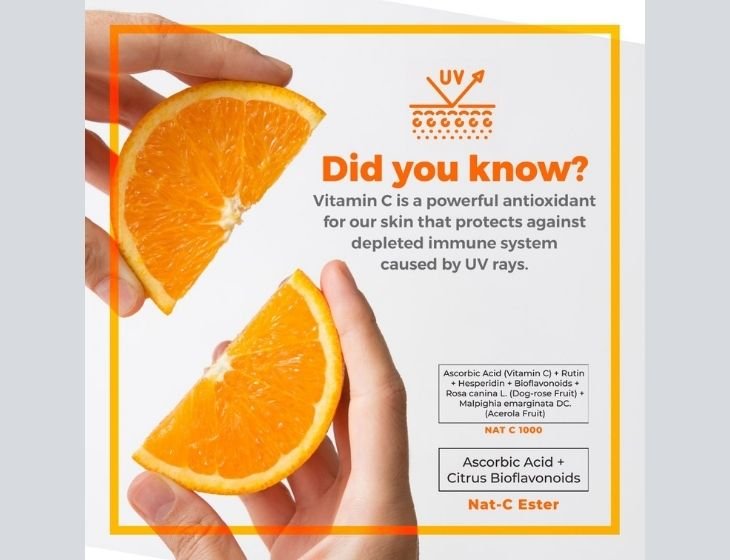 NAT-C ESTER មានផ្ទុកនូវវីតាមីនស៊ីក្រោមទំរង់ដែលមិនមានជាតិអាស៊ីត និងLemon Bioflavonoid។​ Bioflavonoid គឺជាសមាសធាតុធម្មជាតិចម្រាញ់ចេញពីរុក្ខជាតិ ដែលបង្កើនសកម្មភាពវីតាមីនស៊ី ក្នុងរាងកាយ និងផ្តល់អត្ថប្រយោជន៍ប្រឆាំងអុកស៊ីតកម្ម។